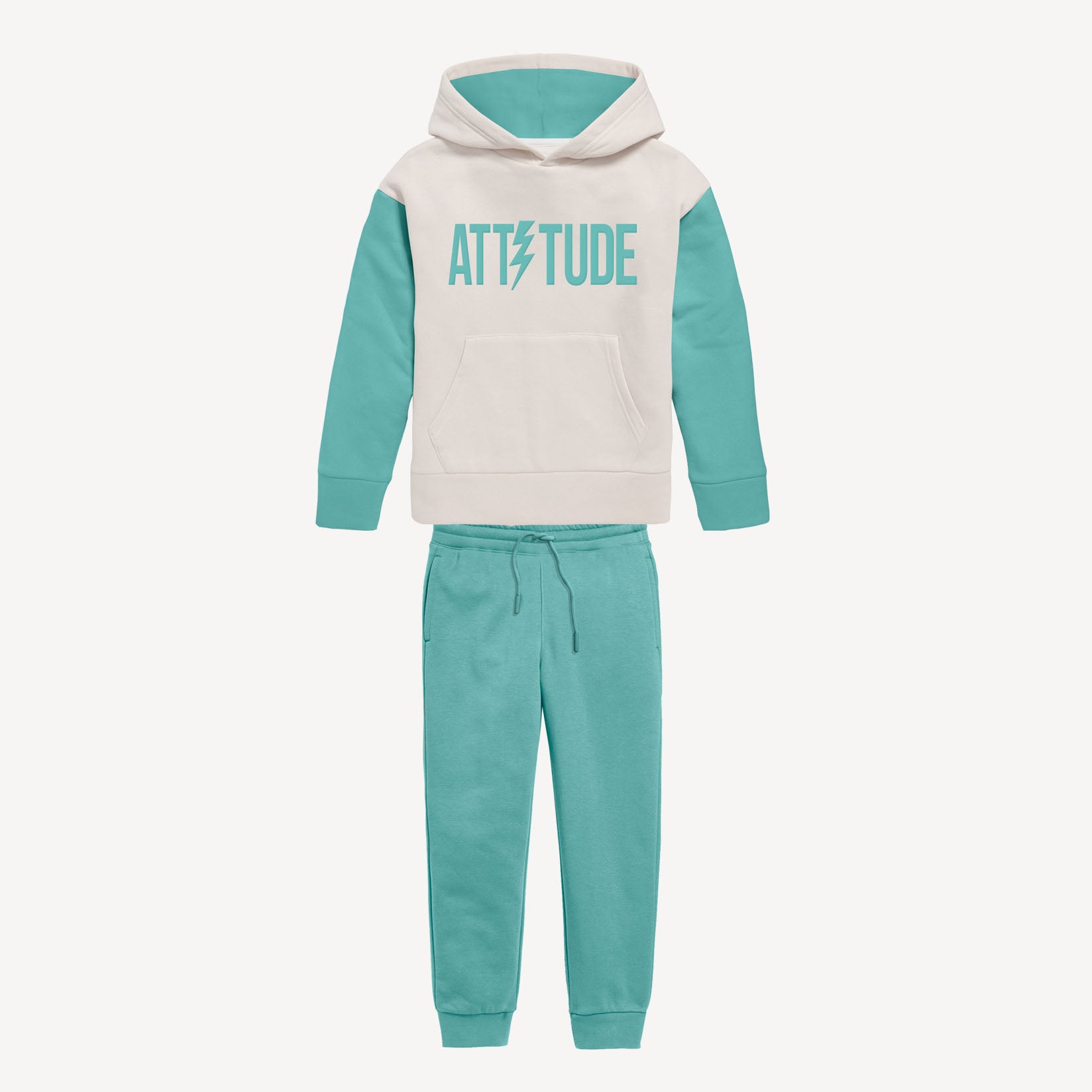 Step into the spotlight with our Attitude Tracksuit, designed for those who dare to stand out! Featuring bold "ATTITUDE" text and a lightning bolt symbol, this high-end fashion piece combines a vibrant aqua teal with creamy accents for a fresh, eye-catching look. Crafted from soft, premium fabric, this unisex tracksuit offers both comfort and style.