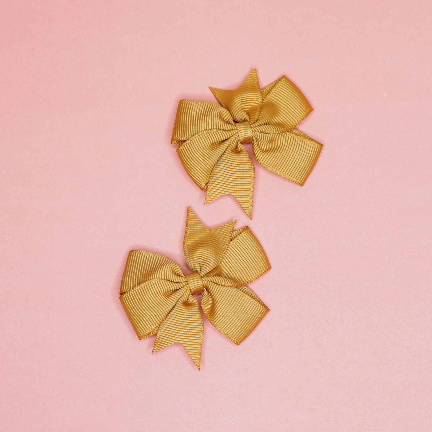 Elegant imported golden striped hairclip bow pair, perfect for adding a chic touch to any hairstyle. Durable and lightweight for everyday wear.