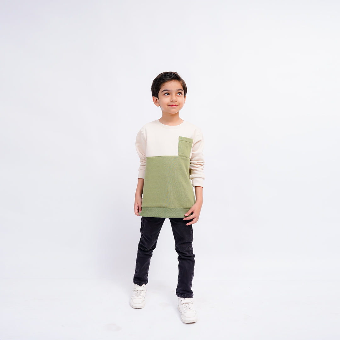 We have designed this trendy beige and olive sweatshirt in soft fleece material so your girl stays warm while she plays, learns, or lounges. The relaxed fit allows easy movements, and the little chest pocket adds a cute detail. The shirt is durable yet gentle on the skin, perfect for keeping your girl feeling cozy while she rocks her winter look!