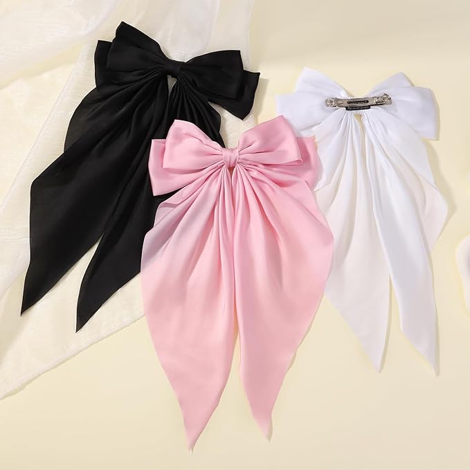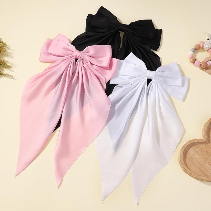 This set includes three large ribbon hair clips that are easy to use and stay securely in place, ensuring comfort and practicality. Whether dressing up for a formal event or adding a chic touch to casual wear, these silk long bow clips are a versatile and timeless accessory.