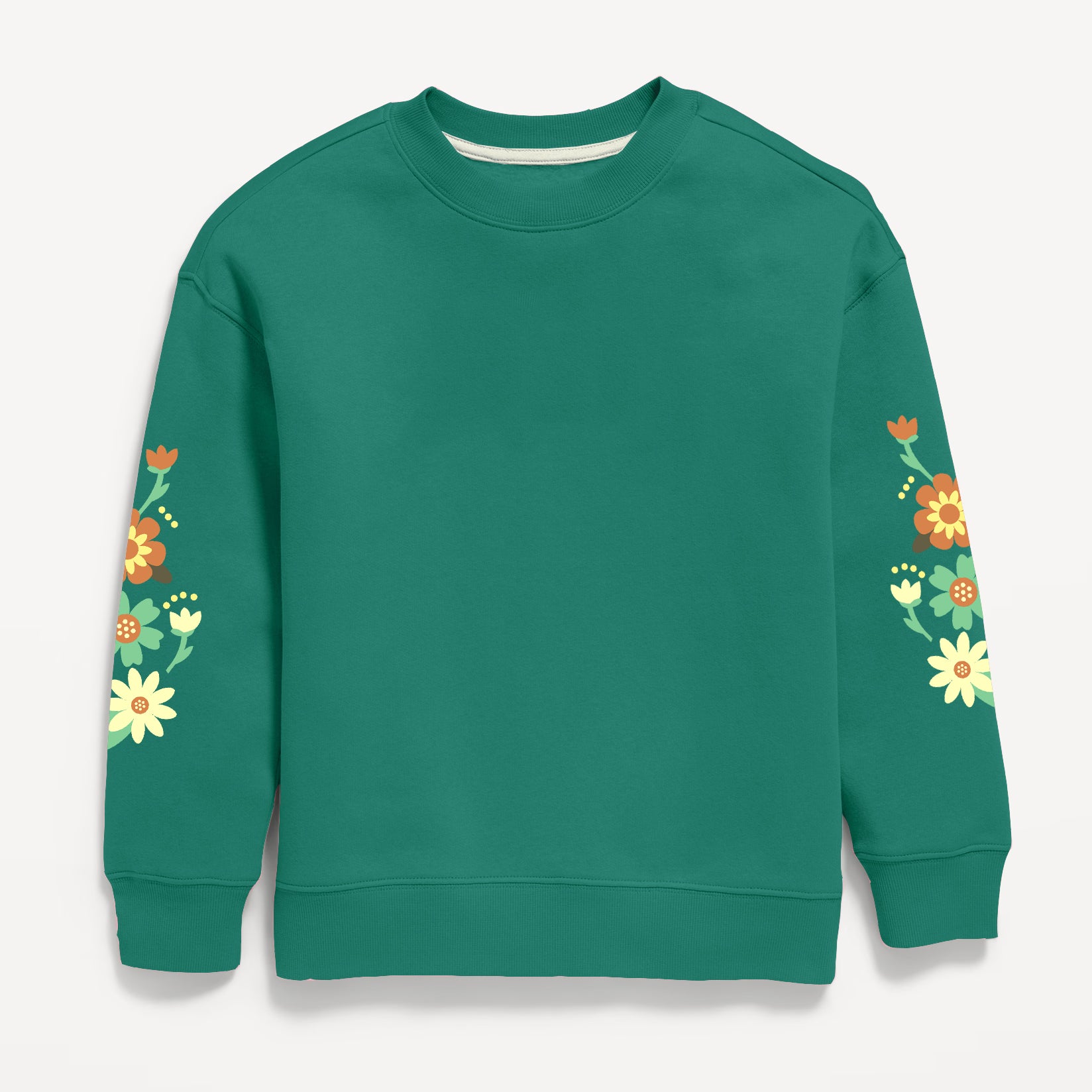 This sweatshirt blends soft winter warmth with a fresh, feminine touch through the beautiful floral sleeve print. It's perfect for casual outings, school days, or cozy weekends at home. The teal and floral accents offer a playful yet elegant vibe that would appeal to girls who love color and nature-inspired designs.