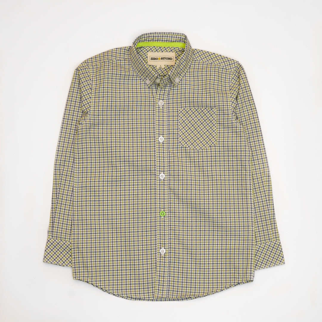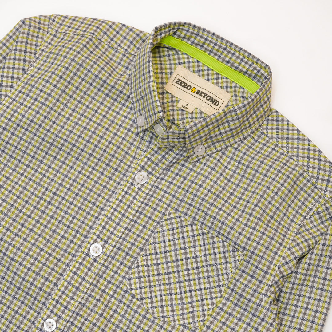 This button-up shirt features a detailed check pattern with a breast pocket and full sleeves, perfect for a neat and dapper look. The light colors and soft, breathable cotton fabric make it a must-have addition to your boy’s summer wardrobe. It is suitable for both a semi-formal look and a more casual style. A sleek silhouette elevated by one unique button—because small details make a big statement.