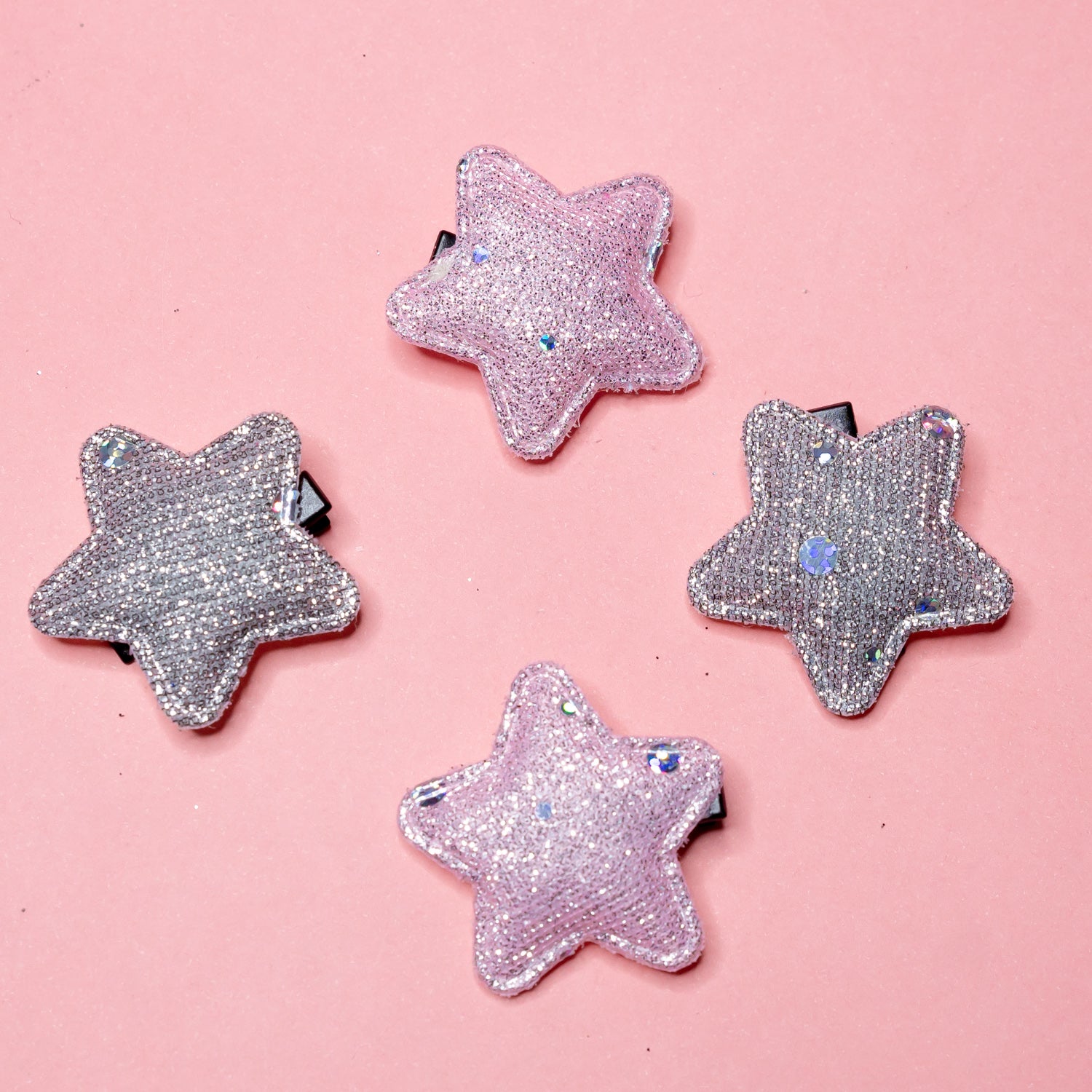 Add a touch of sparkle with this super cute star hair clip, featuring an exquisite glitter finish that twinkles with every move. It's perfect for brightening up any little girl's hairstyle, whether it's for everyday wear or special occasions. Lightweight and comfortable, it stays securely in place without tugging. The whimsical star shape adds a magical charm to any look. A delightful accessory for parties, playdates, or just adding a bit of shine to the day!