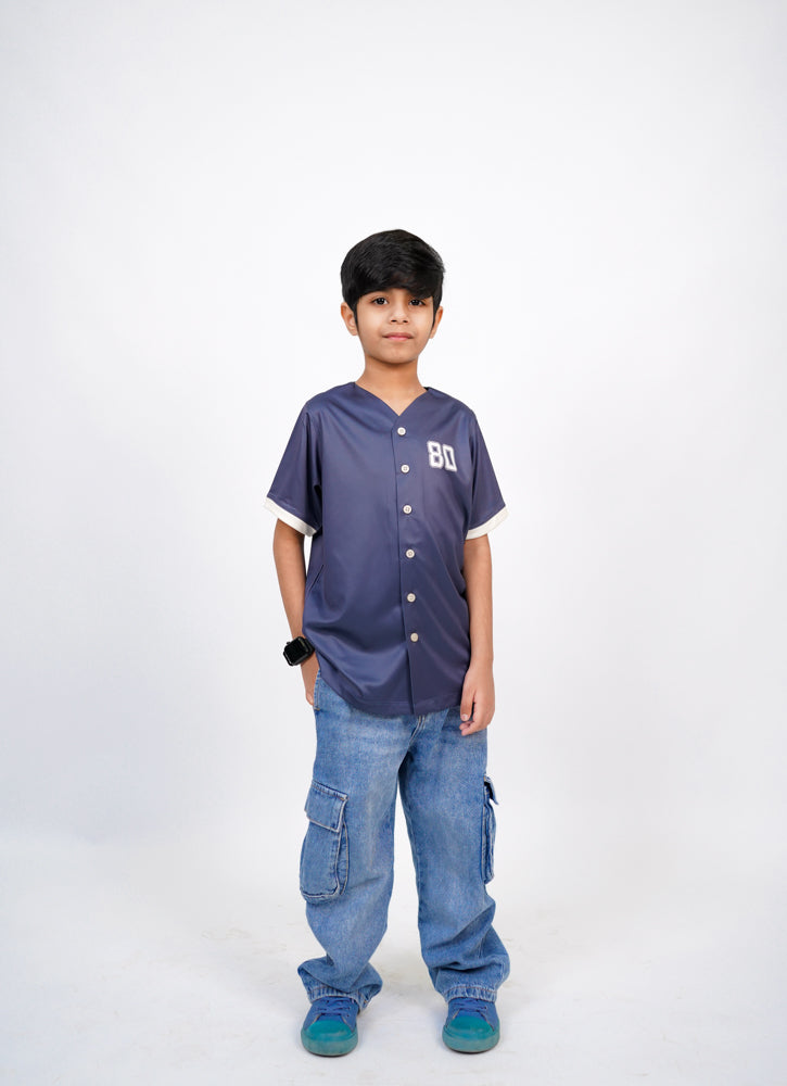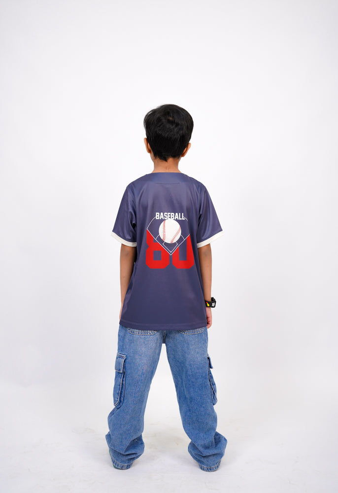 Add a sporty edge to your child’s wardrobe with this teal baseball jersey t-shirt featuring a bold "BASEBALL 80" design. The athletic detailing and side number 80 give it a classic team look, perfect for active days. Made from soft, breathable fabric to keep kids comfortable all day long. Ideal for school, play, or any casual outing with a touch of team spirit.