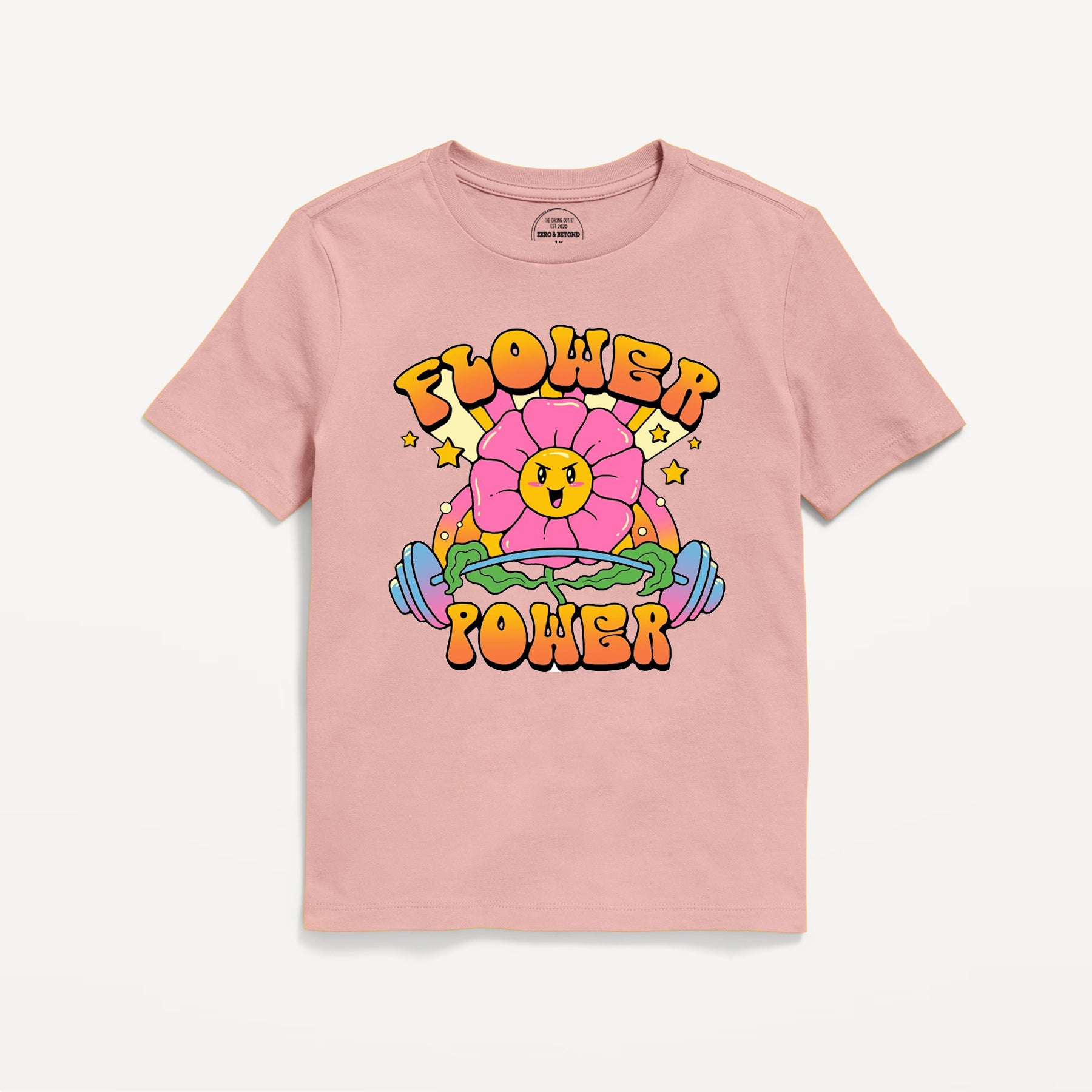 Let her shine in this funky and stylish girls' summer T-shirt featuring bold "Flower Power" text and vibrant floral graphics! Designed for the fashion-forward and free-spirited, this tee brings retro vibes with a modern twist — perfect for sunny days and playful moments.