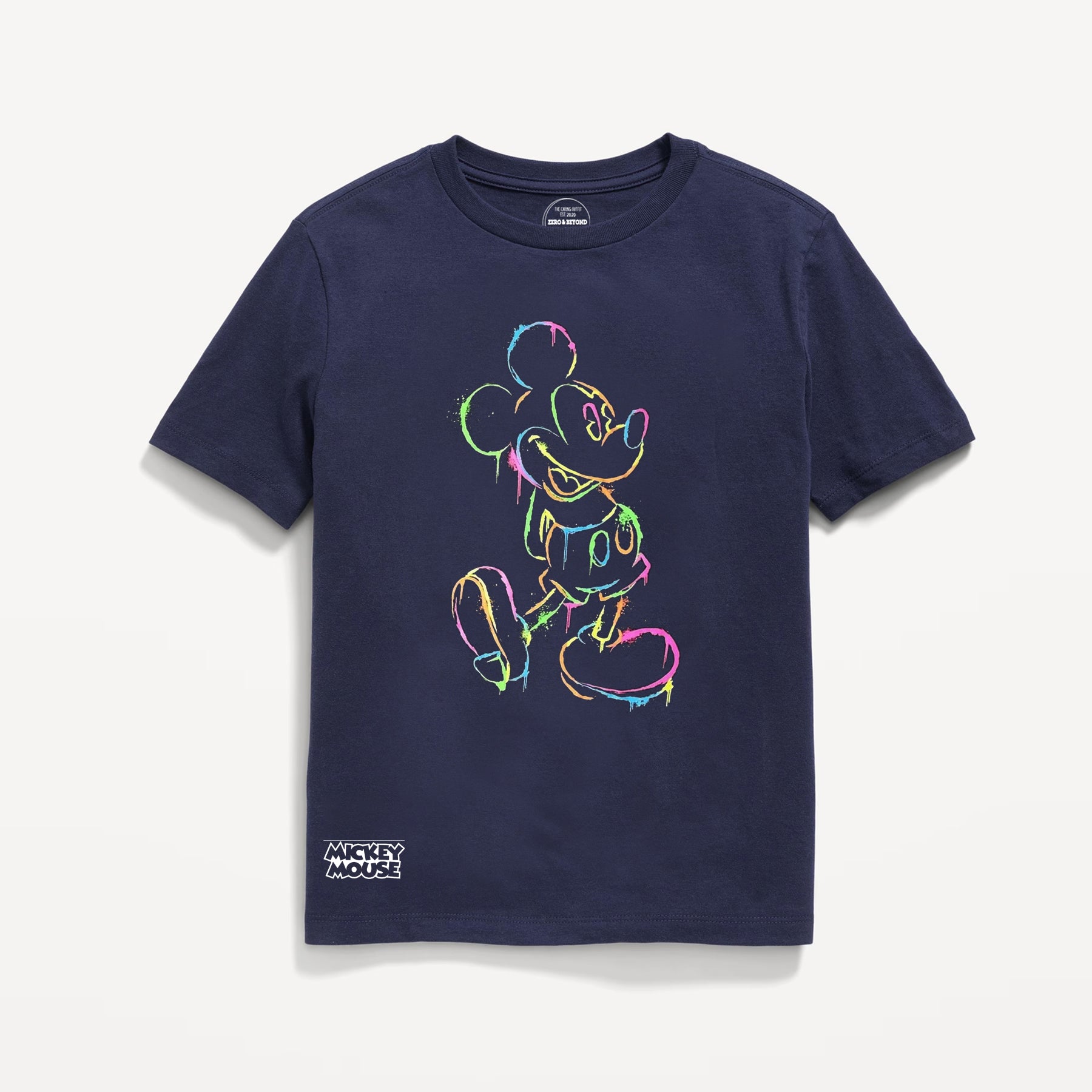 Add fun to their day with this navy blue tee featuring a colorful Mickey Mouse graphic. Crafted from breathable, soft fabric for all-day comfort. Perfect for Disney fans to wear at home, school, or on outings. A cheerful and classic design every kid will love.
