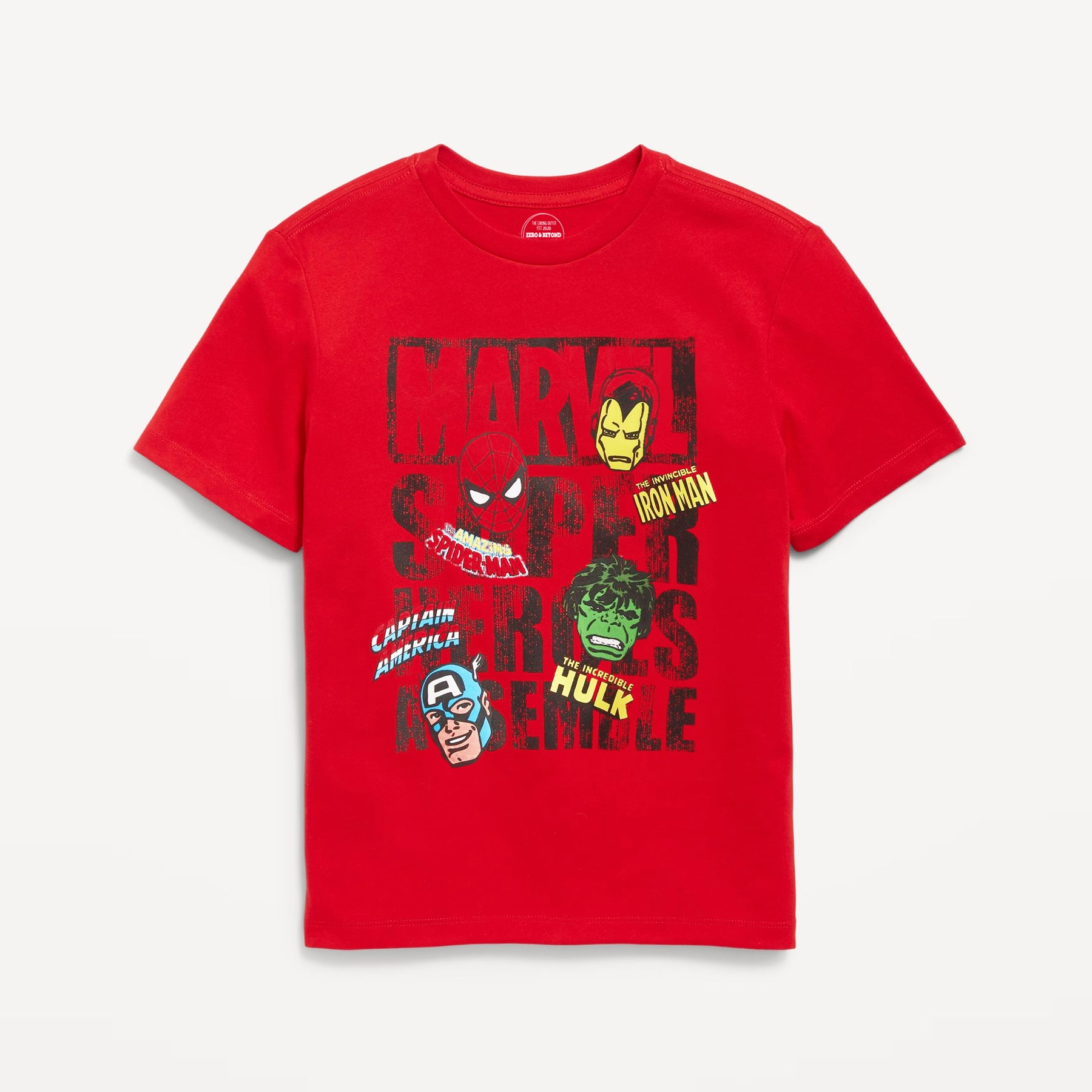 Power up your look with this bold Marvel t-shirt in striking red! Made from soft, breathable fabric that keeps you cool and comfortable all summer long — perfect for young superheroes on the move.