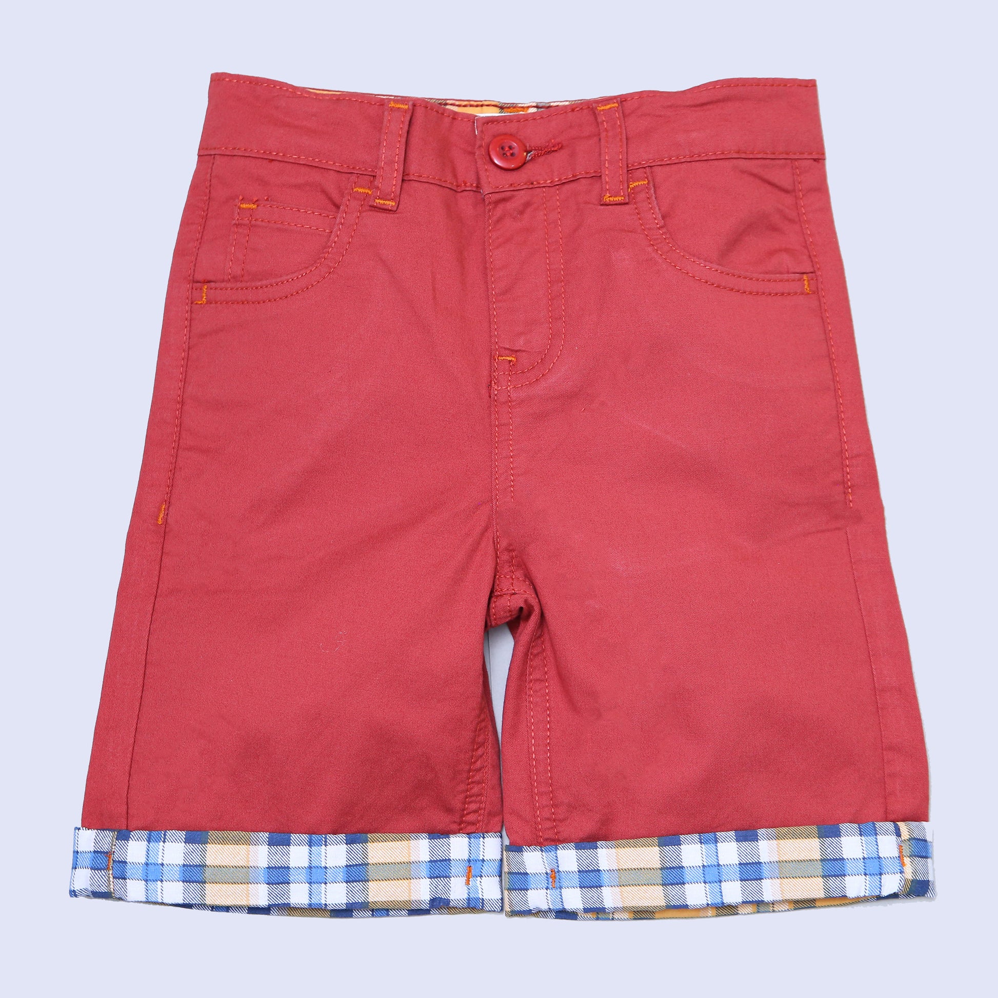 Refresh your summer style with these ultra-versatile red shorts. Designed for comfort and functionality, they feature an adjustable waistband, sturdy metal zip, and secure button closure. A subtle checkered pattern at the bottom adds a stylish twist. Crafted from durable twill cotton fabric, they offer breathability and long-lasting wear—perfect for warm-weather days.