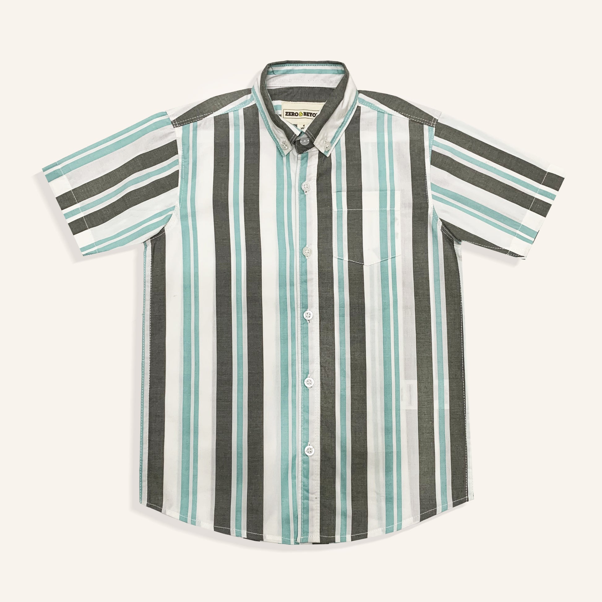 Give your little one a fresh and fun look with this vibrant short-sleeve button-up shirt. The design features cool vertical stripes in light green, white, and grey. It can be paired with shorts or denim pants to give the outfit a trendy look. The regular fit ensures comfort and ease of movement, making it a great choice for casual outings and family gatherings.