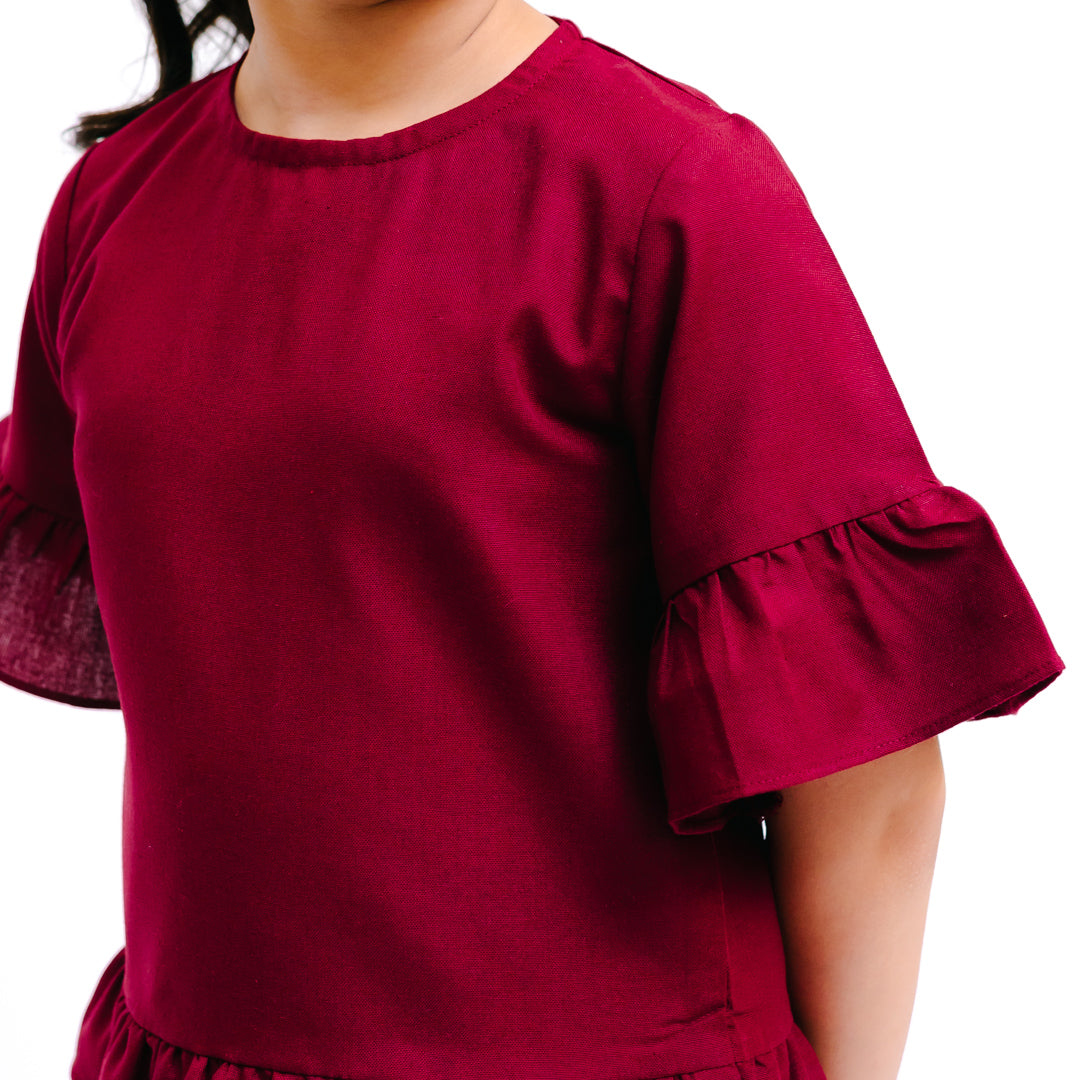 - Maroon Frill Girls Top