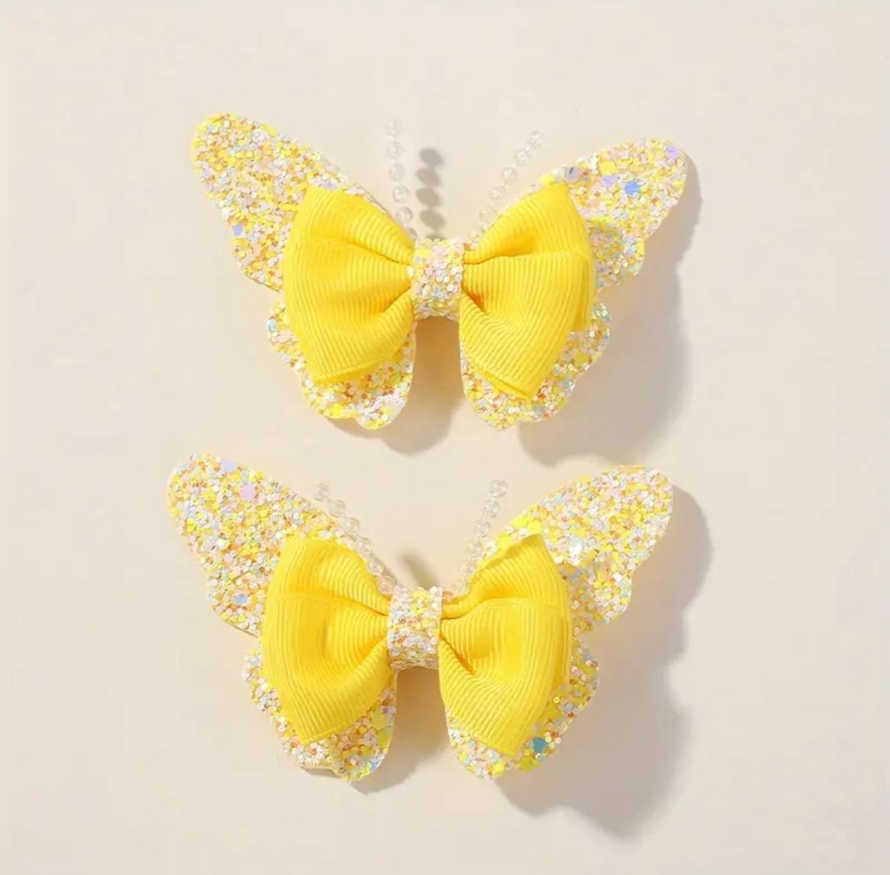 Yellow Pearl Butterfly theme Hairclips